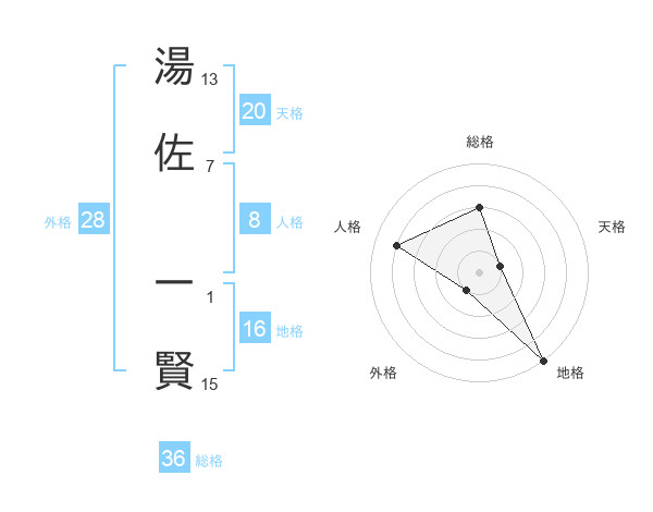 湯佐 一賢さんを姓名の画数から五運を鑑定
