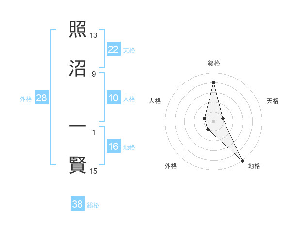 照沼 一賢さんを姓名の画数から五運を鑑定