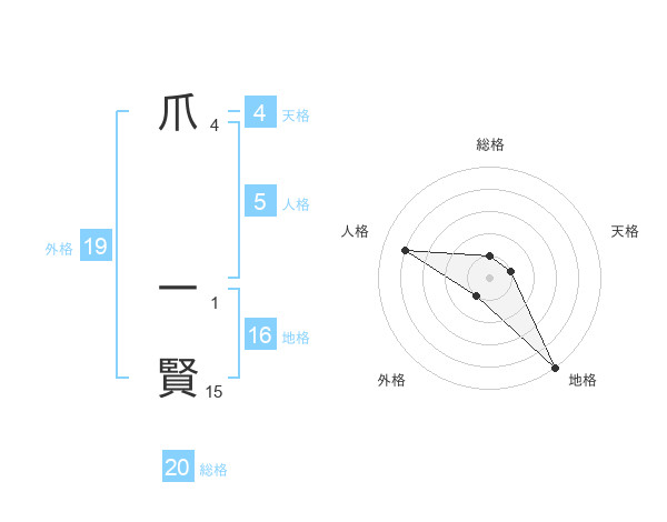 爪 一賢さんの総格は20画の1点!