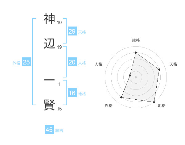 神辺 一賢さんの総格は45画の4点!
