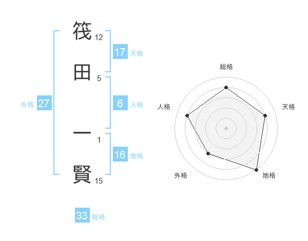 筏田 一賢さんを姓名の画数から五運を鑑定