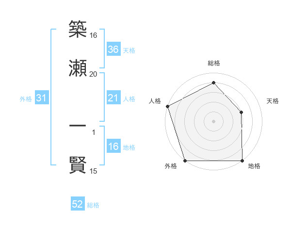 築瀬 一賢さんを姓名の画数から五運を鑑定