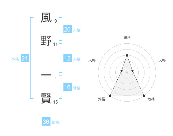 風野 一賢さんの外格は24画の5点!