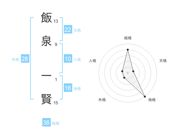 飯泉 一賢さんの総格は38画の4点!