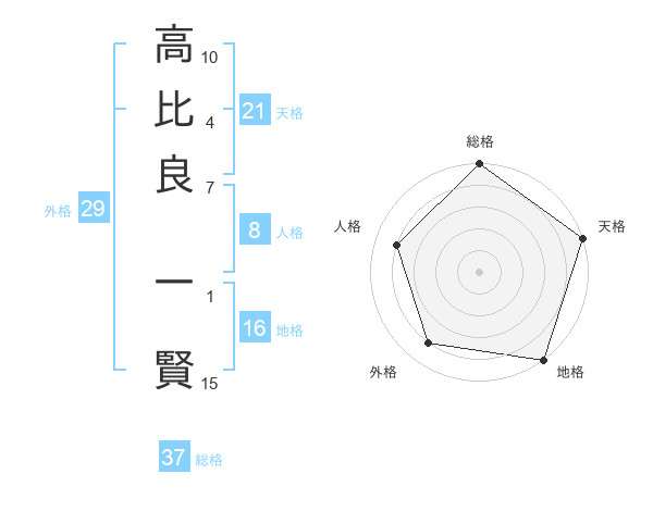 高比良 一賢さんを姓名の画数から五運を鑑定