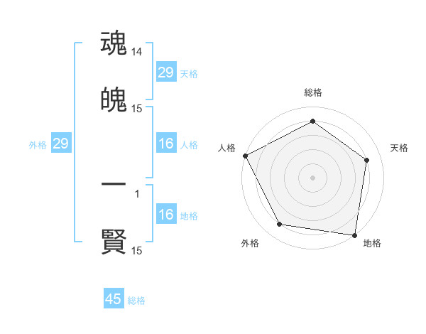 魂魄 一賢さんの総格は45画の4点!