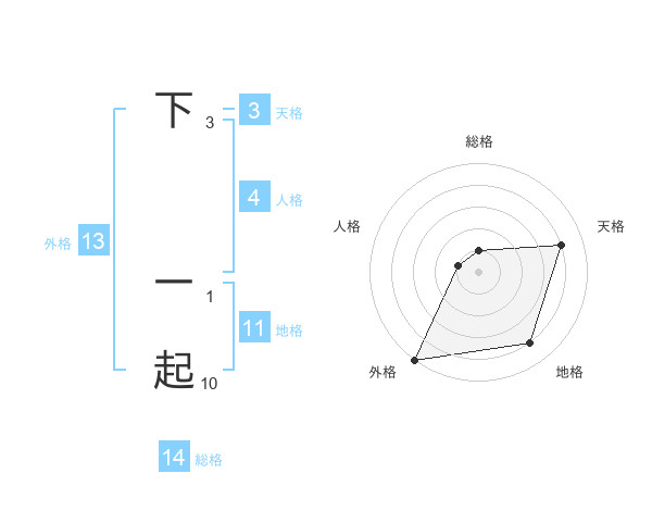 下 一起さんの総格は14画の1点!