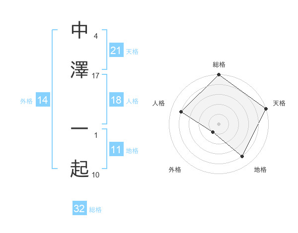 中澤 一起さんの総格は32画の5点!