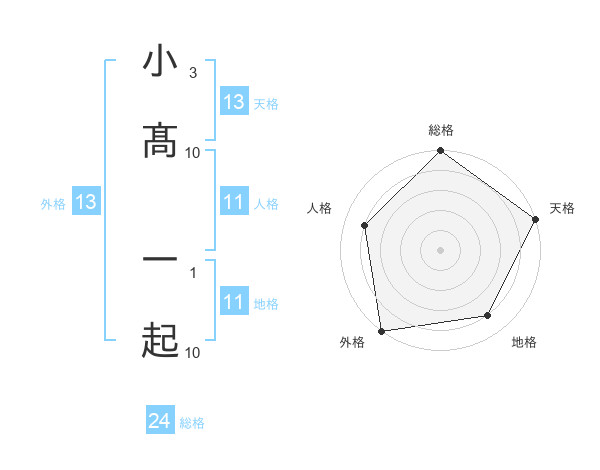 小髙 一起さんの外格は13画の5点!