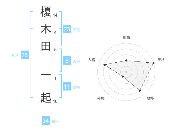 榎木田 一起さんの天格は23画の5点!