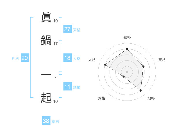 眞鍋 一起さんの総格は38画の4点!