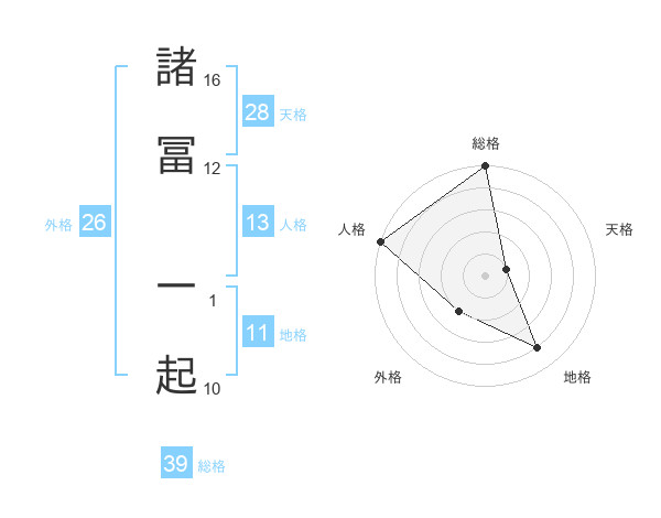 諸冨 一起さんの総格は39画の5点!