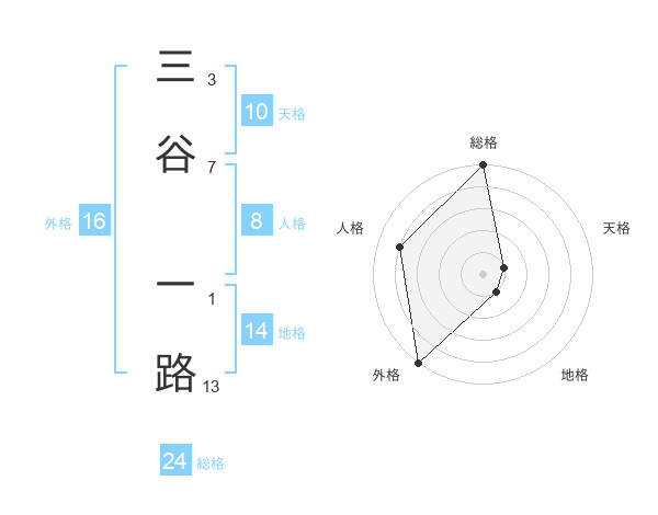 三谷 一路さんの天格は10画の1点!