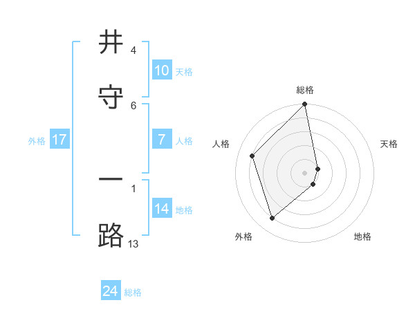 井守 一路さんの外格は17画の4点!