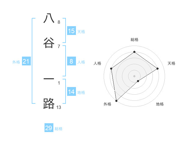 八谷 一路さんの総格は29画の4点!