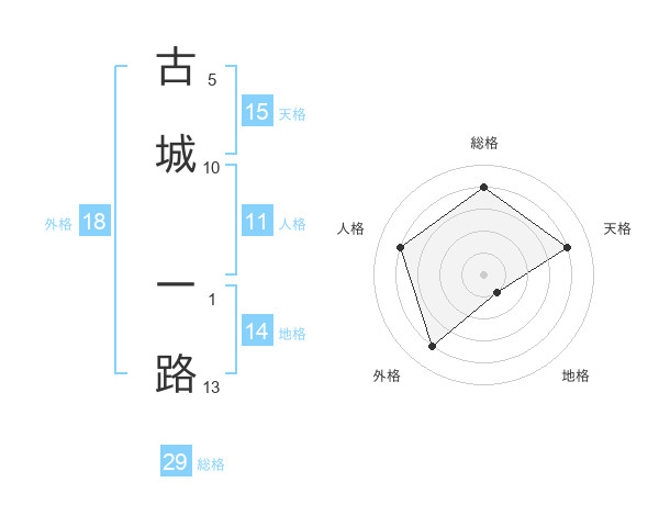 古城 一路さんの総格は29画の4点!