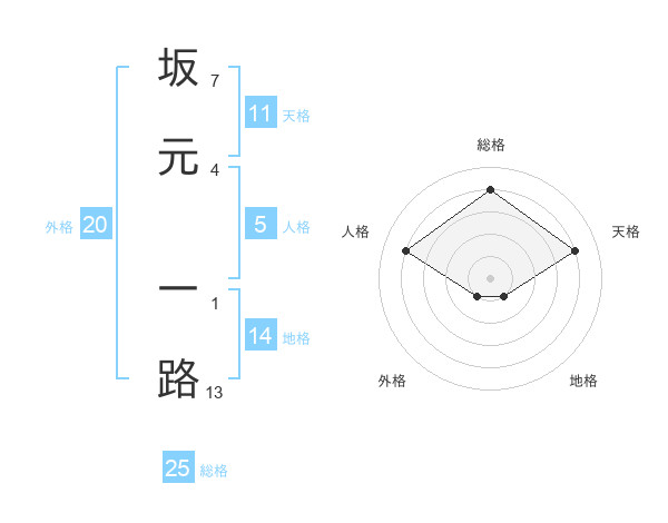 坂元 一路さんの総格は25画の4点!