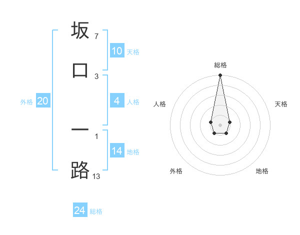 坂口 一路さんの総格は24画の5点!