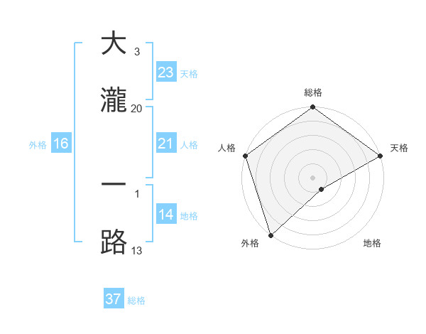 大瀧 一路さんの外格は16画の5点!