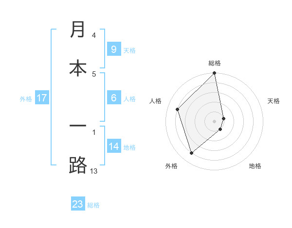 月本 一路さんの総格は23画の5点!