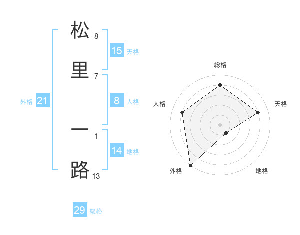 松里 一路さんの総格は29画の4点!