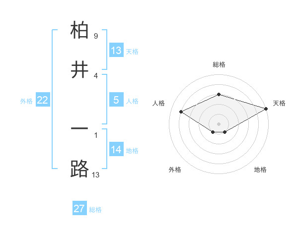 柏井 一路さんの天格は13画の5点!