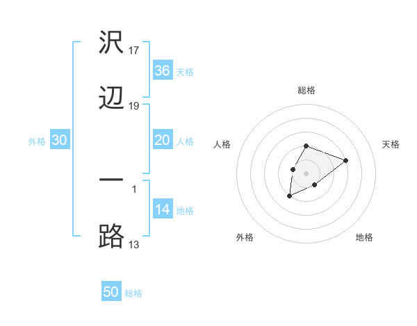 沢辺 一路さんを姓名の画数から五運を鑑定