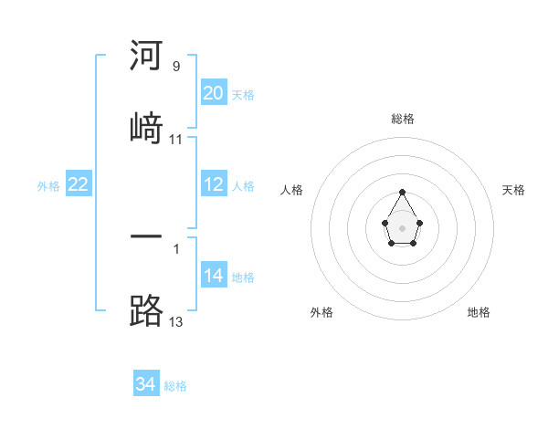 河﨑 一路さんの総格は34画の2点!