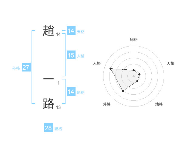 趙 一路さんの天格は14画の1点!