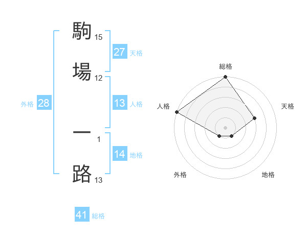 駒場 一路さんの総格は41画の5点!