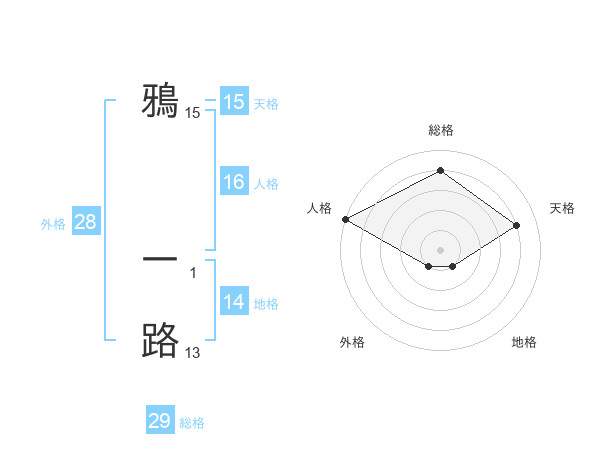 鴉 一路さんの総格は29画の4点!