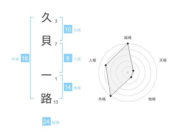 久貝 一路さんの外格は16画の5点!