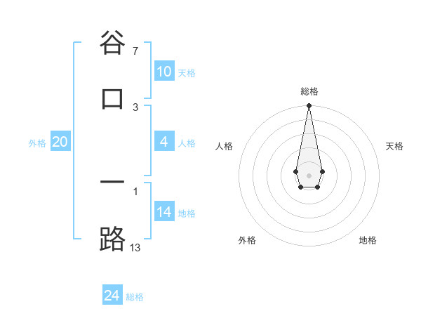 谷口 一路さんの総格は24画の5点!