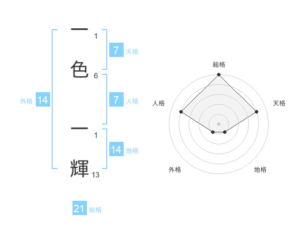 一色 一輝さんの総格は21画の5点!