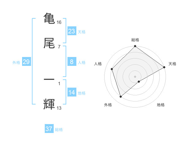 亀尾 一輝さんの天格は23画の5点!