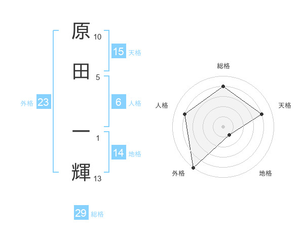 原田 一輝さんの総格は29画の4点!