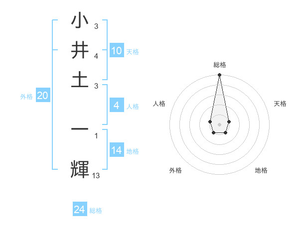 小井土 一輝さんの総格は24画の5点!