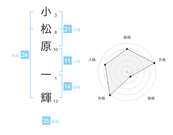 小松原 一輝さんの総格は35画の4点!