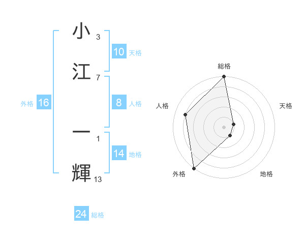 小江 一輝さんの外格は16画の5点!