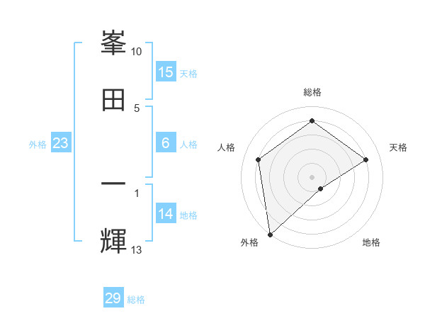 峯田 一輝さんを姓名の画数から五運を鑑定