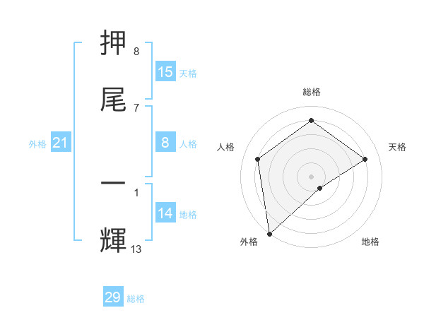 押尾 一輝さんを姓名の画数から五運を鑑定