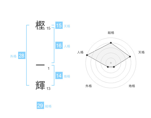 樫 一輝さんの総格は29画の4点!