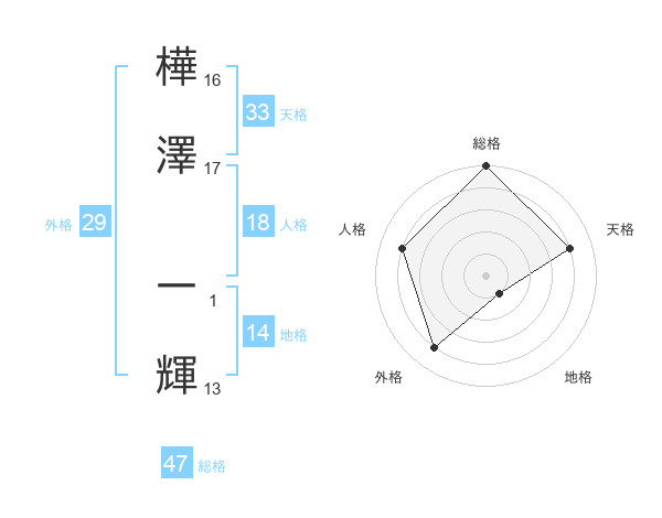 樺澤 一輝さんの総格は47画の5点!