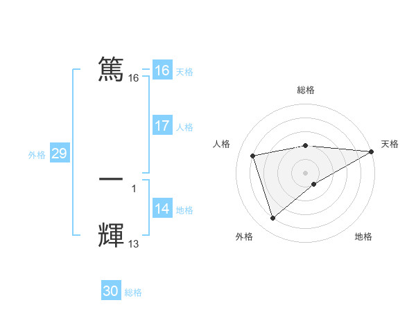篤 一輝さんの外格は29画の4点!