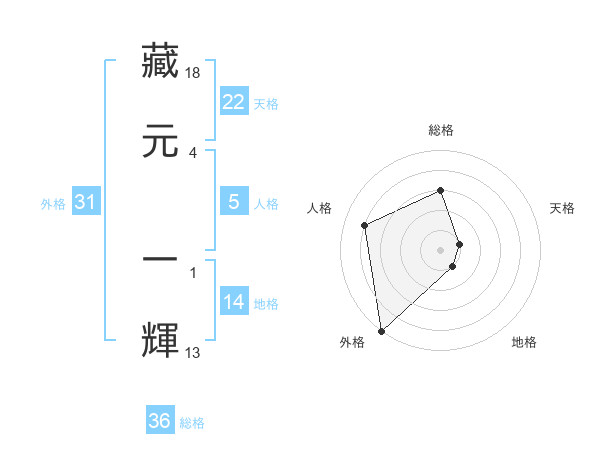 藏元 一輝さんの外格は31画の5点!