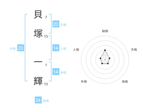貝塚 一輝さんの総格は34画の2点!