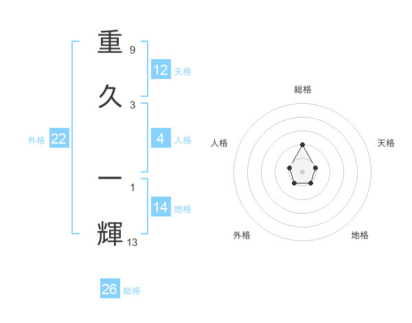 重久 一輝さんの外格は22画の1点!