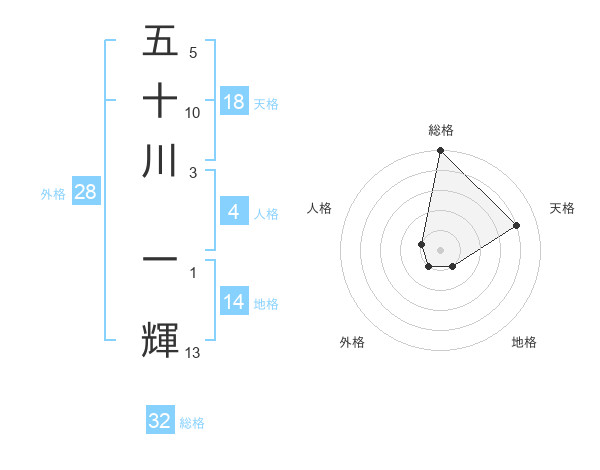 五十川 一輝さんの総格は32画の5点!