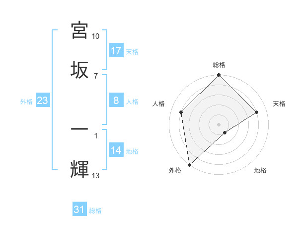 宮坂 一輝さんを姓名の画数から五運を鑑定