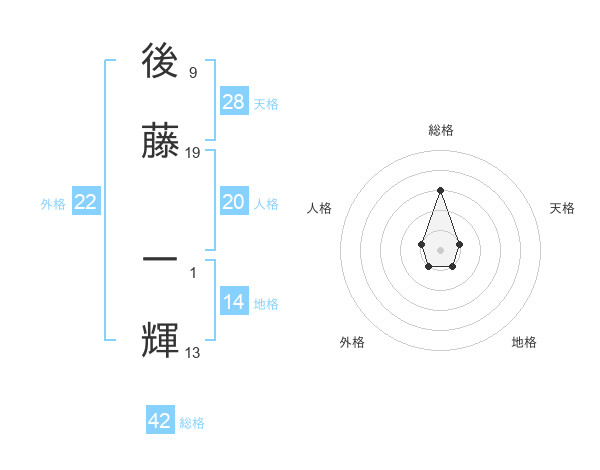 後藤 一輝さんの外格は22画の1点!